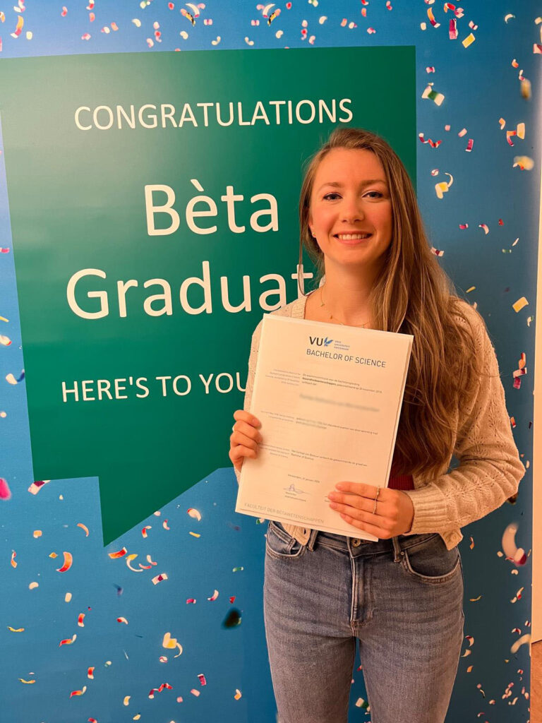 Op deze foto heb ik zojuist mijn diploma Gezondheidswetenschappen in ontvangst genomen.